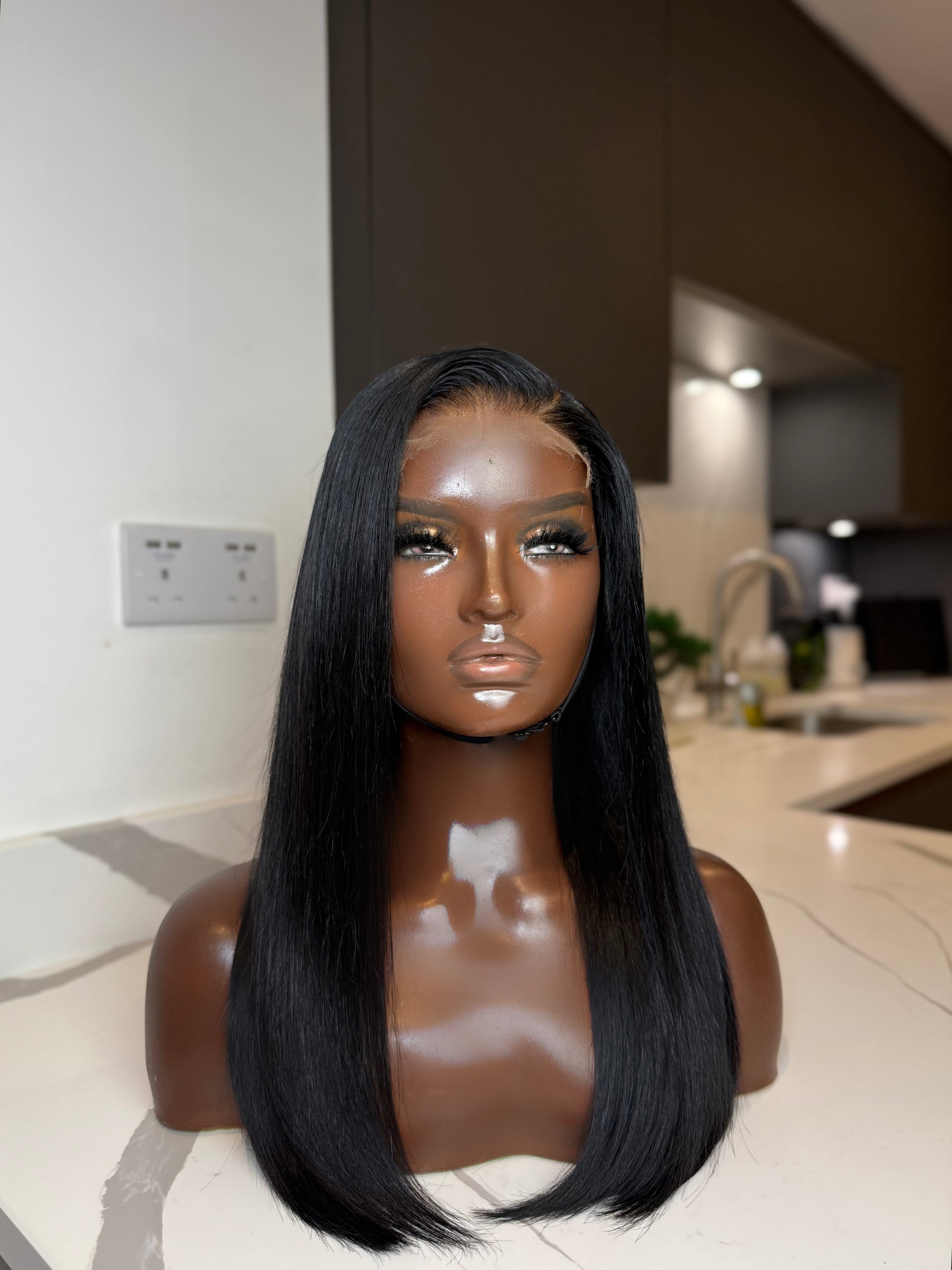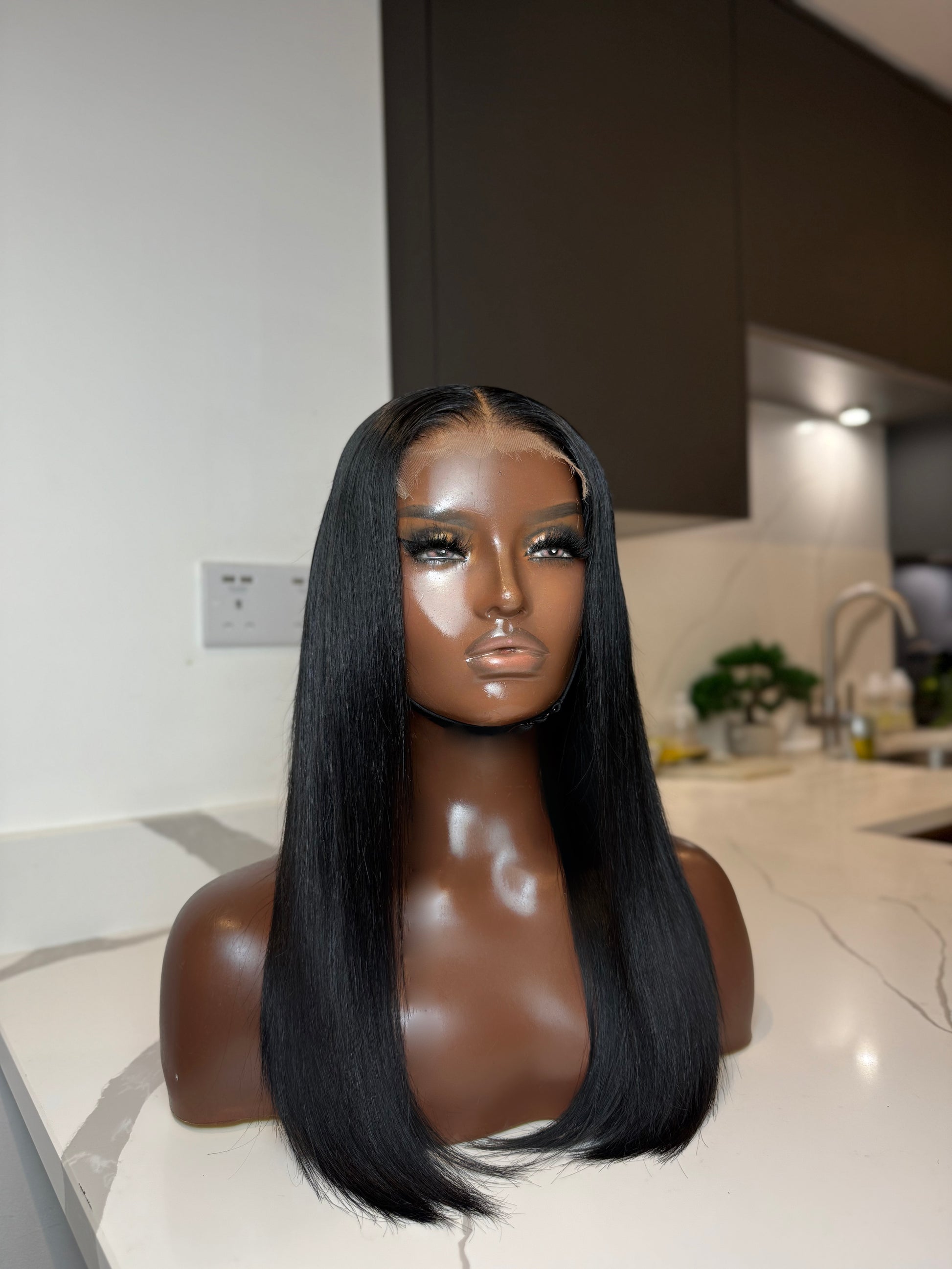 • 100% Straight 14 Virgin Hair – Jet Black finish, constructed with 2 and half full bundles made into Medium (22.0 - 22.5) wig cap